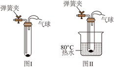 16. 某兴趣小组做可燃物燃烧条件的探究实验:①在有空气的试管内放入白磷,关闭弹簧夹,白磷不燃烧(如图I);②将图I装置放到热水中形成图Ⅱ装置,白磷剧烈燃烧,气球胀大。
