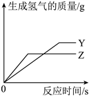 14. 现有体积大小相同的三种金属X、Y、Z,分别放入三份溶质质量分数相等的足量稀硫酸中,X不发生反应,Y、Z反应生成氢气的质量与反应时间的关系如图所示。X、Y、Z的金属活动性顺序正确的是