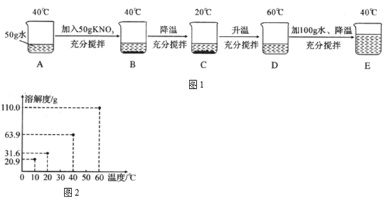 18. 如图1为某兴趣小组用硝酸钾进行的系列实验,图2为硝酸钾溶解度与温度的关系。
