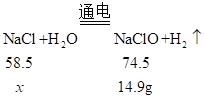 。试利用化学方程式计算:要制取14.9g次氯酸钠,理论上需要NaCl的质量。