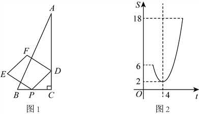 (2)当点P由点B运动到点A时,经探究发现S是关于t的二次函数,并绘制成如图2所示的图象请根据图象信息,求S关于t的函数解析式及线段