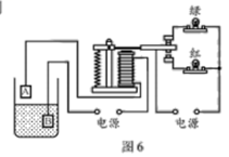 8.党的二十大报告指出“科技是第一生产力”。某学校为了培养学生的科学素养,组织科技创新大赛,小明在比赛中制作了水位自动报警器,原理图如图6所示。当水位达到金属块A时(一般的水都能导电),则( )