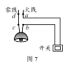 10.如图7所示电路,开关闭合后,灯不发光。用试电笔接触a、b、c三处,氖管都发光;接触d处,氖管不发光。则故障可能是( )