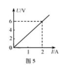 7.定值电阻R的U-I关系图象如图5所示,当该电阻两端电压为3V时,通过它的电流为( )