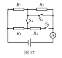 22.(6分)如图17所示的电路,电源电压为5V,四个定值电阻的阻值均为5Ω。请完成下列任务: