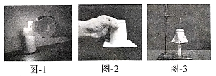 15.(3分)如图-1,在纸杯口蒙上一层薄纸巾,纸杯底部中央戳一个小孔,让小孔对准“F”光源,可在薄纸巾上观察到倒立的“F”图样,这是由于光的________形成的;如图-2,纸杯中装满水,用硬卡片盖住杯口,用手压住卡片,倒置纸杯,手离开卡片后,卡片不掉落,证明了_________的存在;如图-3,在纸杯侧壁剪开若干个小口,折叠成扇叶状,将其杯口朝下悬挂在蜡烛正上方,点燃蜡烛后,纸杯旋转起来,此过程中热空气的__________转化为纸杯的机械能。