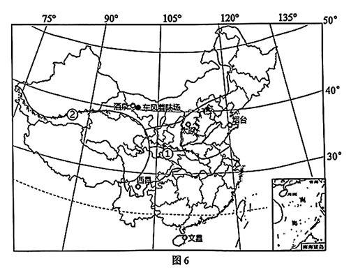 42.图6为“中国五大卫星发射中心分布图”,读图完成下列题目。(每空1分,共15分)