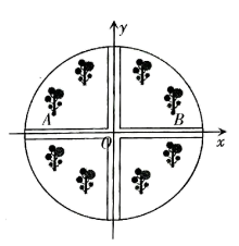 4. 某小区的圆形花园中间有两条互相垂直的小路,园丁在花园中栽种了8棵桂花,如图所示.若A,B两处桂花的位置关于小路对称,在分别以两条小路为x,y轴的平面直角坐标系内,若点A的坐标为