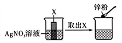 溶液中,观察到溶液颜色变蓝后取出X,向烧杯内再加入一定量锌粉,振荡后,溶液蓝色逐渐消失。