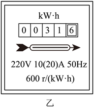 11. 图甲是一个食品自动加热台的简化电路图,此加热台单独与图乙所示的电能表相连接。闭合图甲中的开关S,加热台开始正常工作,当台内食品温度降到30℃时,温度控制开关S0自动转接,使电路处于加热状态;当台内食品温度升高到60℃时,S0自动转接到保温状态。已知定值电阻