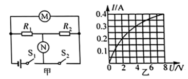 两端的电压关系如图乙所示。当M、N都是电流表,且