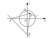 与x轴、y轴分别交于A、B两点,C、D是半径为1的