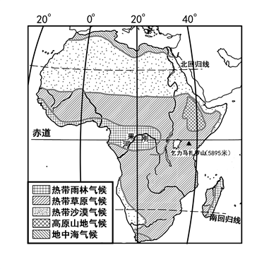 下图为非洲气候分布图,每年6~10月为北半球热带草原湿季。据此完成下面小题。