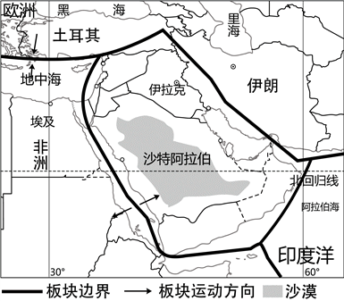 18. 中东历来是全世界的热点地区。2023年3月10日,沙特阿拉伯和伊朗在北京宣布恢复外交关系,正式实现和解。下图为中东地区地理简图。据此完成下列要求。