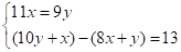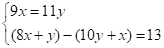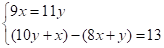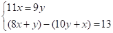 5. 《九章算术》是我国古代数学的经典书,书中有一个问题:“今有黄金九枚,白银一十一枚,称之重适等;交易其一,金轻十三两.问金、银一枚各重几何?”意思是甲袋中装有黄金9枚(每枚黄金重量相同),乙袋中装有白银11枚(每枚白银重量相同),称重两袋相等.两袋互相交换1枚后,甲袋比乙袋轻了13两(袋子重量忽略不计).问黄金、白银每枚各重多少两?设每枚黄金重x两,每枚白银重y两,则可列方程组为( )