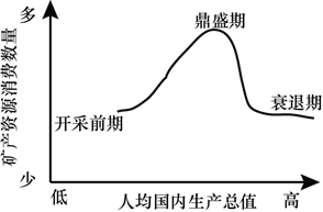 12. 图示意某区域矿产资源消费数量随人均国内生产总值的变化。完成矿产资源消费数量从鼎盛期到衰退期的变化,主要由于该区域( )