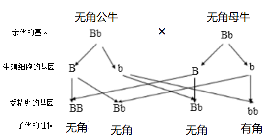 该头无角公牛与无角母牛⑤再次交配繁殖,遗传图解如图: