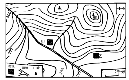 (1)图中甲山脉是____,乙河流是____,丙湖泊是____。