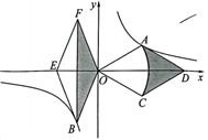 和点B为顶点,分别作菱形AOCD和菱形OBEF,点D,E在x轴上,以点O为圆心,OA长为半径作