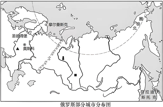 (3)右图中_________(城市名称)是俄罗斯太平洋沿岸地区重要的海港,也是俄罗斯远东地区重要的城市。