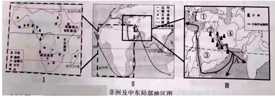 (3)伊朗是中东重要的石油生产国,位于图Ⅲ中①②③④的_________(填序号)处。