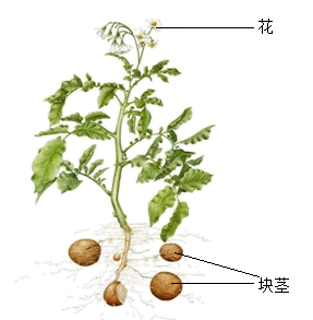 6. 下图是布拖县有名的乌洋芋(马铃薯)植株示意图。它生长在海拔2600-2800米之间,皮薄、质嫩、淀粉含量高、营养丰富、口感好、耐贮存。食用部分是块茎,其中富含淀粉。以下关于食用部分说法正确的是( )