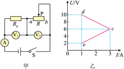 【详解】由电路图知,滑动变阻器R和电阻R0串联,电压表V1测R0两端电压,V2测R两端电压,电流表测电路中电流. 滑动变阻器的滑片P从b点滑到a点的过程中,滑动变阻器R连入电路的电阻变小,电路中的电流变大,根据串联电路的分压原理可知:滑动变阻器两端的电压变小,R2两端的电压变大;所以图乙中dc是表示电压表V2的示数随电流表示数变化的图线,ec是表示电压表V1的示数随电流表示数变化的图线;