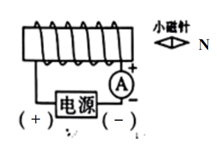 【详解】由电流表的使用方法可知,电流应从电流表的正极流入,负极流出,故可知电源的左端为正极,右端为负极,即电流从螺线管的左端流入,右端流出,由安培定则可知,通电螺线管的左端为S极,右端为N极,再由磁极间的相互作用可知,小磁针静止时左端为S极,右端为N极,如下图所示: