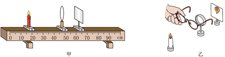 (3)如图乙所示,蜡烛和凸透镜之间放上近视眼镜,光屏上能得到清晰的像,若取下眼镜,要在光屏上重新得到清晰的像,应将光屏___________(选填“靠近”或“远离”示)凸透镜。