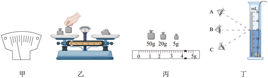 (4)小滨在量筒内倒入20ml的水,放入金属块后量筒内水面如图丁所示,量筒读数时,视线应在______(选填“A”“B”或“C”)处。金属块的体积是______m3,金属块密度是______g/m3。