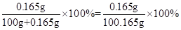 C、20℃氢氧化钙溶解度为0.165g,即100g水最多可溶解0.165g氢氧化钙,故此时饱和氢氧化钙溶液的溶质质量分数计算式可表示为: