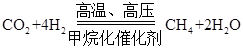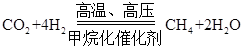 参照一氧化碳转化为甲烷的原理,则二氧化碳和氢气在高温、高压和甲烷化催化剂的作用下反应生成甲烷和水,该反应的化学方程式为:
