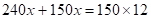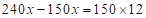 4. 我国元朝朱世杰所著的《算学启蒙》一书是中国较早的数学著作之一,书中记载一道问题:“良马日行二百四十里,驽马日行一百五十里,驽马先行一十二日,问良马几何追及之?”题意是:快马每天走240里,慢马每天走150里,慢马先走12天,试问快马几天可以追上慢马?若设快马x天可以追上慢马,则下列方程正确的是( )