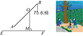 14. 如图所示,桔棒是一种原始的汲水工具,它是在一根竖立的架子上加上一根细长的杠杆,末端悬挂一重物,前端悬挂水桶.当人把水桶放入水中打满水以后,由于杠杆末端的重力作用,便能轻易把水提升至所需处,若已知:杠杆
