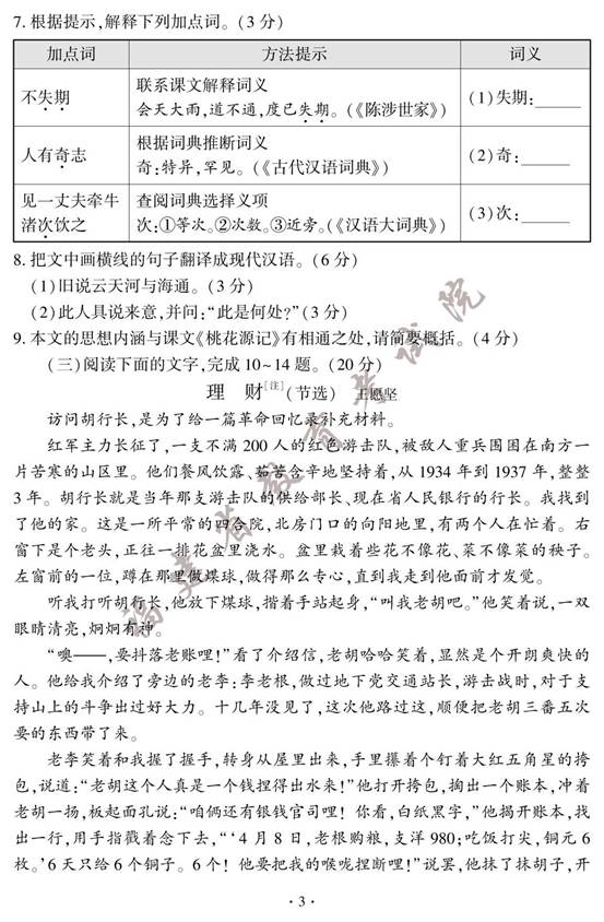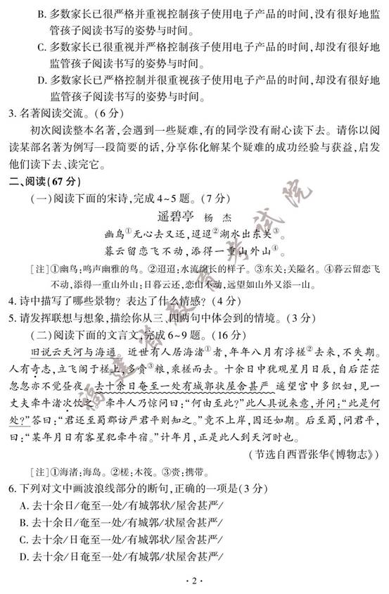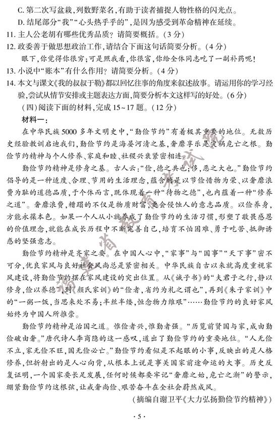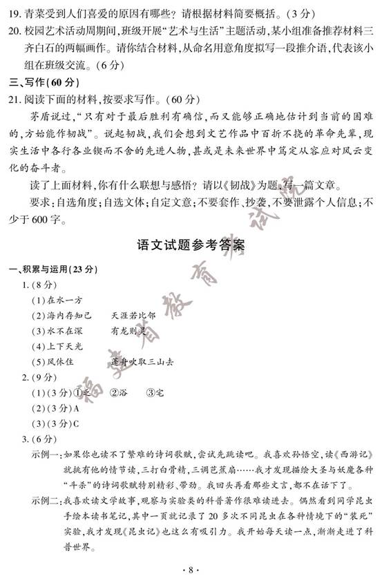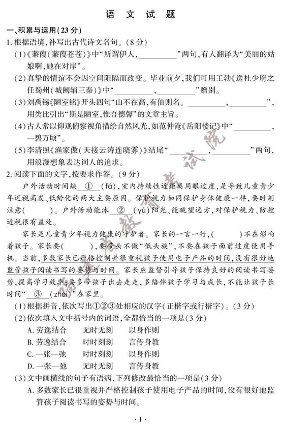 2023年福建中考语文试卷及答案