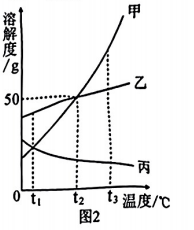19.甲、乙、丙三种固体物质的溶解度曲线如图2所示。下列说法一定正确的是