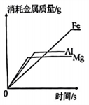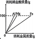 20.向三个烧杯中分别放入足量的Mg、A1、Fe粉末,同时加入质量分数相同的100g稀盐酸,充分反应。反应的有关图像错误的是