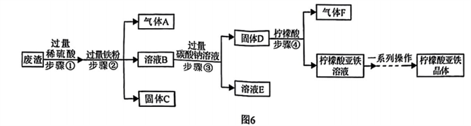 27.(6分)柠檬酸亚铁(FeC6H6O7)是一种易被吸收的补血剂。利用硫酸厂的废渣(主要含Fe2O3、Fe3O4,还有少量SiO2)制备柠檬酸亚铁,该工艺流程如图6所示,回答下列问题: