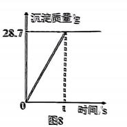 30.将AgNO3溶液逐滴加入73.0g稀盐酸中,t秒后,沉淀质量不再增加,产生沉淀的质量与反应时间关系如图8所示。