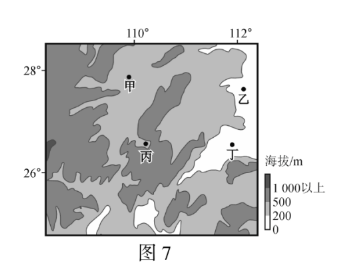 湖南省绥宁县南、北、东三面环山,是优良的水稻育种基地。图7示意绥宁县及其附近地形,读图完成下面小题。