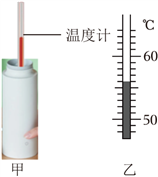 (4)经过一段时间,温度计示数稳定后,A液体中温度计示数如图乙所示,则A液体温度降为 _________℃,B液体温度降为53.0℃;