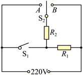 24.某种带保温功能的电热水壶,其发热部分电路如图所示。已知电源电压U=220V保持不变,电阻丝R1=110Ω、R2=88Ω。通过调节开关S1、S2可以实现低温、中温、高温三挡的切换;当水温降到60℃时,电路自动切换成低温挡进行保温。已知