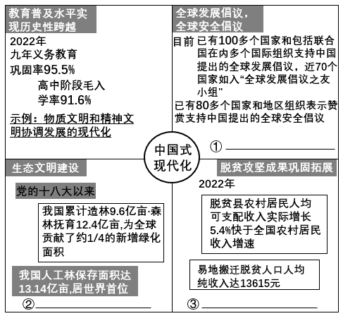 13.为学习宣传党的二十大精神,学校准备以中国式现代化为主题制作一期宣传海报。以下是学校宣传小组的同学为制作宣传海报收集的数据和文字材料。