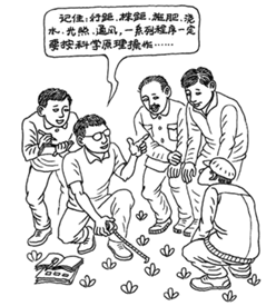 ▲那时农民搞种植业全凭传统经验,靠天吃饭。 | ▲现在农民在农业生产上积极学科学用科学。 |