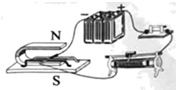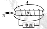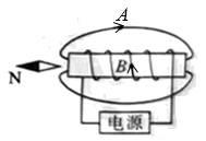 22. 如图,根据小磁针静止时的N极方向,用箭头在图中A点标出磁感线的方向和导线中B点的电流方向。