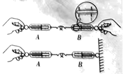 23. 在“探究相互作用力的关系”的实验中,取A、B两个相同的弹资测力计,平放在水平桌面上,让它们互相钩挂在一起。