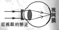 20. 如图是近视眼矫正的示意图,请大致画出图中两条平行光线经过晶状体后的折射光线。