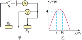 10.如图甲所示电路,电源电压恒定,R1为定值电阻,滑动变阻器R2铭牌上标有“120Ω 0.8A”的字样,电流表量程0~0.6A,电压表量程0~15V。在保证电路安全的前提下,移动滑动变阻器滑片,经测量分析,得出R2的电功率P与其两端电压U的关系如图乙。则下列说法正确的是( )