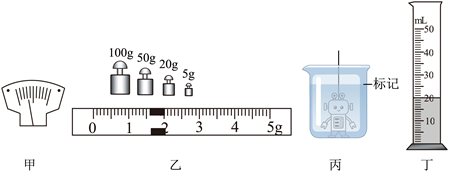 (4)往量筒中加入40mL水,再将量筒中水缓慢倒入烧杯,使烧杯中水面上升至标记处,量筒中剩余水量如图丁所示;