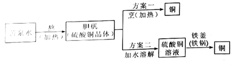 16. 中国古代典籍中记录了很多化学知识,展示了我国古代人民的智慧。《梦溪笔谈》中记载了用“苦泉水”制取铜的方法:“挹其水熬之,则成胆矾,烹胆矾则成铜。熬胆矾铁釜,久之亦化为铜”。主要流程如下图所示: